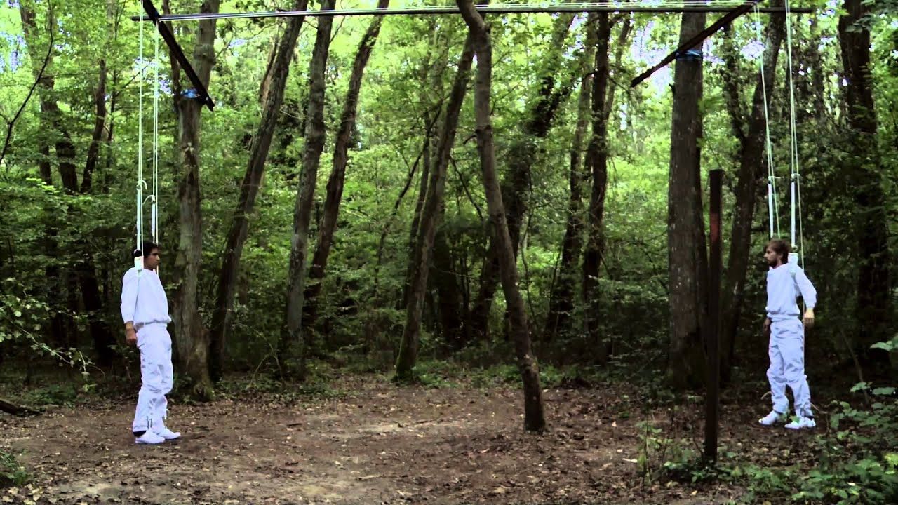 The project “How to Survive in the Woods” by Soyoung Chung and Arnaud Colcomb explores the boundaries between nature and the artificial, gravity and weightlessness, and visual apparatus and spatial experience. Two intersecting hexagonal structures are connected to pulleys, moving like the kinetic machines of Cyclop’s creator Jean Tinguely, while also acting as forest sentinels, reminiscent of Niki de Saint Phalle’s watchful eyes. The metal and glass surfaces reflect the surrounding environment, luring visitors as if they were prey and enclosing them within the work. Glass lanterns, created in collaboration with a local glass artist, are manipulated through the weight of a performer on the pulleys, interacting with the forest trees to generate shifting patterns of light and shadow. In this way, the forest is transformed into a space of flowing rhythm. Visitors navigating the forest follow shifting sightlines, movements, and reflections of light, experiencing the interdependence between individual and collective, and between humans and their environment. Infused with humor and irony, the performance and installation offer an intuitive reflection on humanity’s place, role, and fragile balance within the world.
